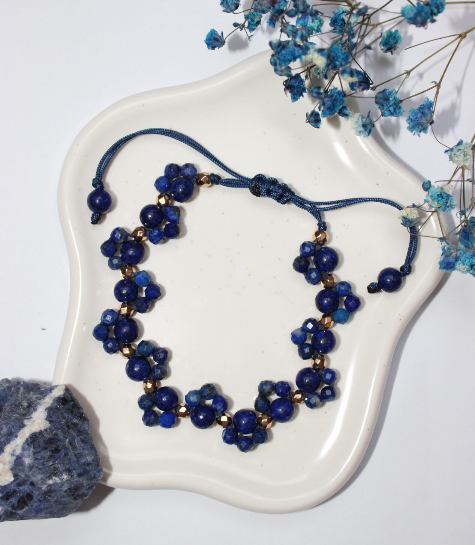 Ta bransoletka to połączenie mądrości, spokoju i siły — idealna dla osób, które chcą zaufać swojej intuicji i jednocześnie pozostać ugruntowane. Głęboki, królewski odcień lapis lazuli łączy się tu z metalicznym blaskiem hematytu, tworząc biżuterię elegancką, symboliczną i pełną mocy. Ręcznie wykonana z naturalnych minerałów, wspiera wewnętrzną harmonię, klarowność myśli i ochronę energetyczną.